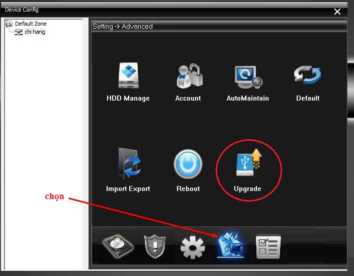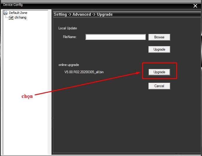 - Nếu mắt cam chưa có chuẩn onvif port 8899 thì ta cần update phần mềm cho cam theo hình dưới.